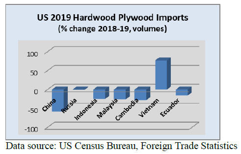 US importers on hardwood plywood fell by 20% in 2019, from US$1.95
