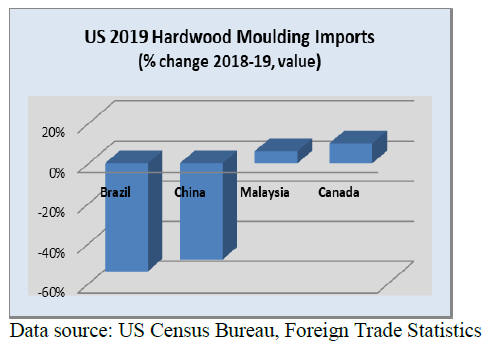 US imports of hardwood moulding decreased by 26% in 2019. Imports were