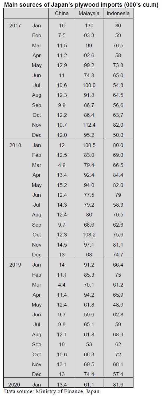 90% of Japan¡¯s January 2020 imports of wooden doors