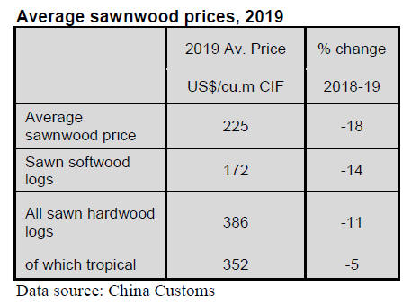 According to data from China¡¯s Customs, 2019 sawnwood