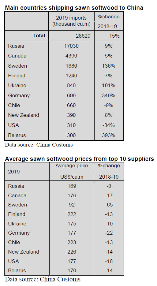 Russia was the main sawn softwood supplier to China in