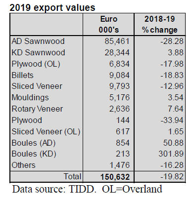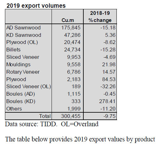 Sawnwood exports in 2019 earned US$27.4 million