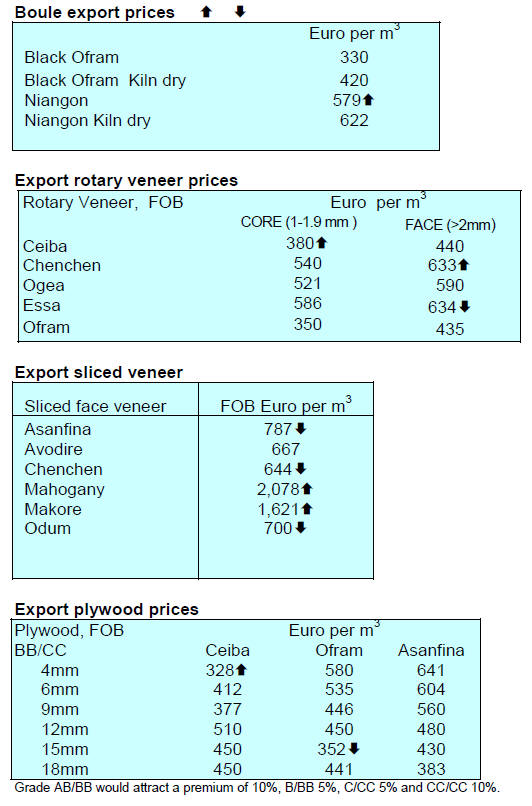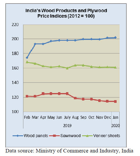 veneer, plywood as well as furniture and parts were lower