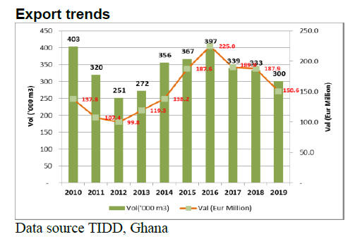 Ghana exported a total of 35,508 cu.m of wood products