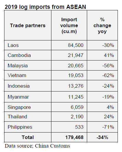 China¡¯s sawnwood imports from ASEAN in 2019 came to
