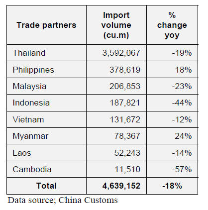 Over 75% of China¡¯s sawnwood imports are sourced from