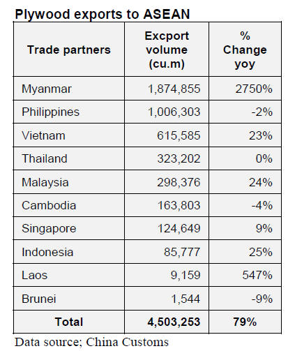 In contrast, China¡¯s particleboard exports to ASEAN in