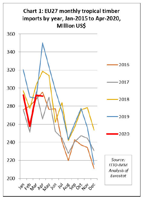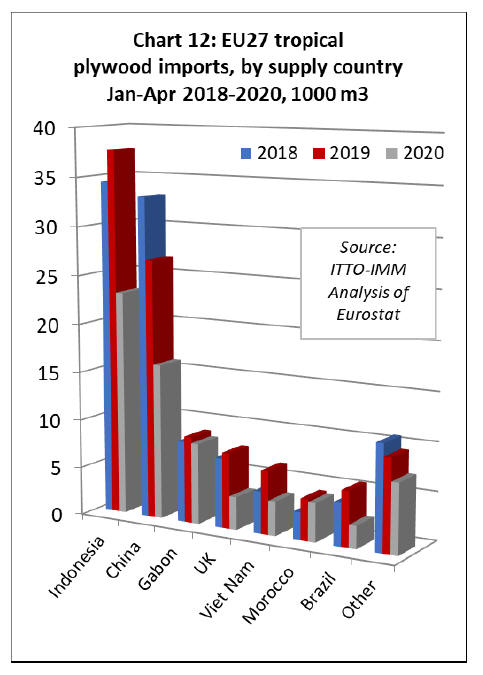 EU imports of tropical hardwood faced plywood were also