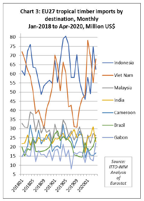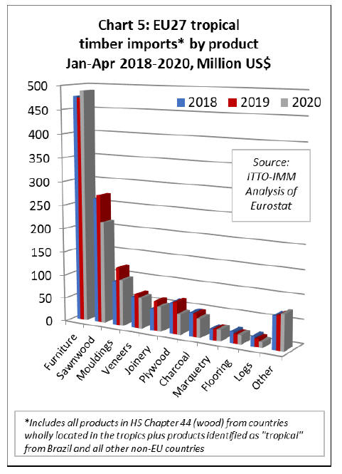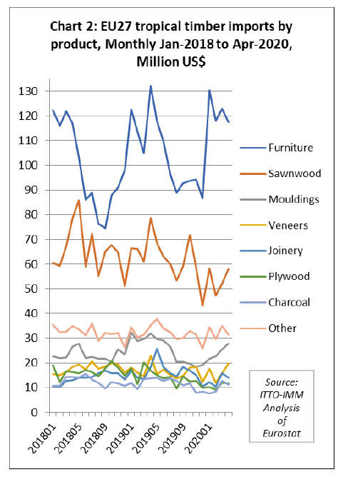 Chart 2 shows that in all tropical wood product groups,