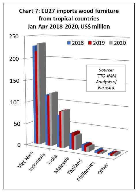 Although imports of wood furniture from tropical