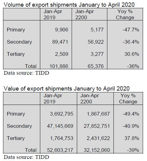 exports but export earnings were 22% lower than a year