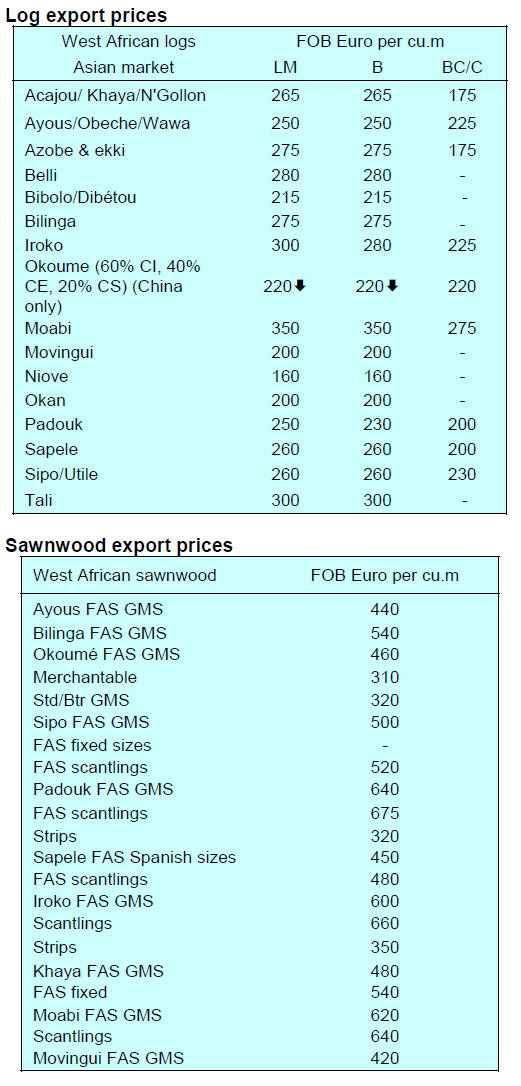 were recorded at 4,006 cu.m, a decline of 40% compared