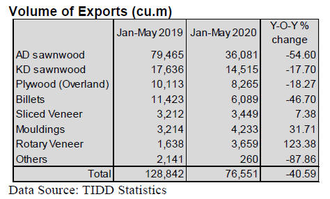 In contrast, exports of MDF in April fell just 2% to 38,366