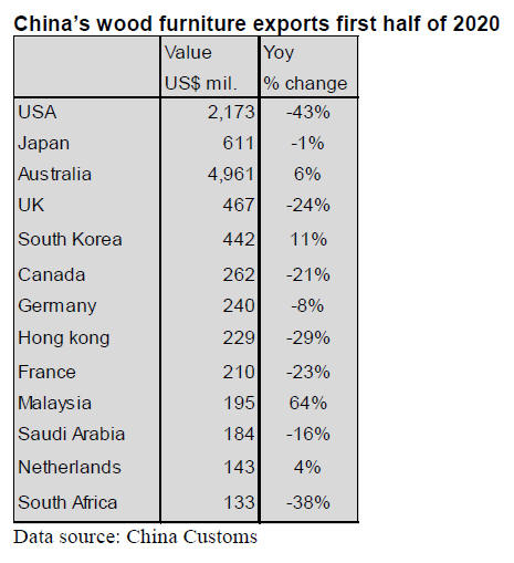 half of 2020 and the value of China¡¯s wood furniture