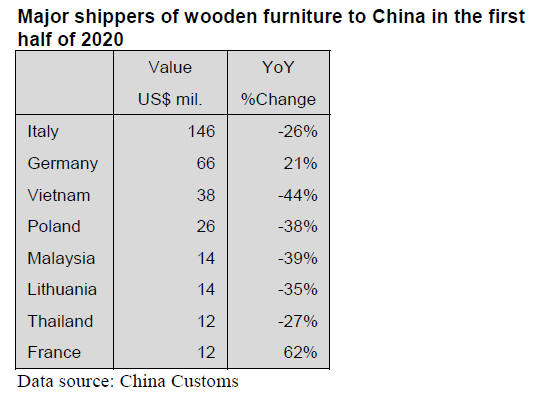 suppliers of China¡¯s wooden furniture imports, over 60%
