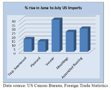 Tropical hardwood imports rose in July