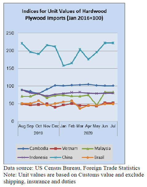 Hardwood plywood imports rose in July