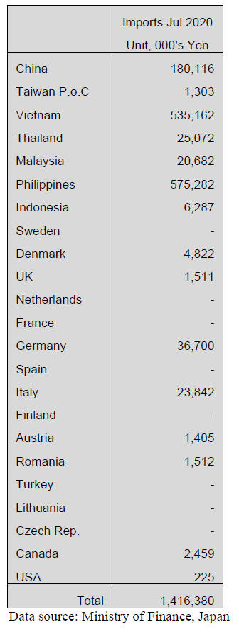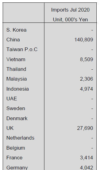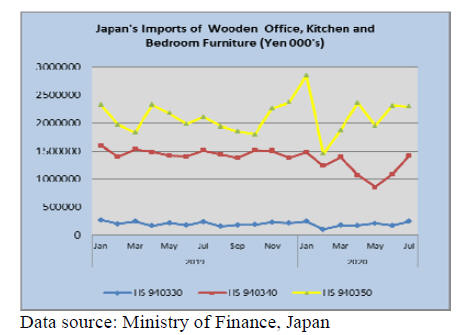 The value of July imports of wooden office furniture