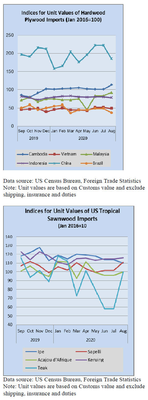 Imports of jatoba rose 3% in August while ipe rose by 5%.