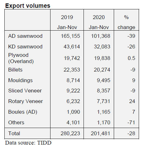Wood-based panel exports to China increased in 2020