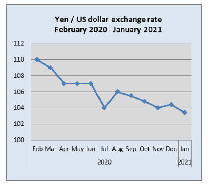 The yen/dollar exchange rate continues to edge towards a