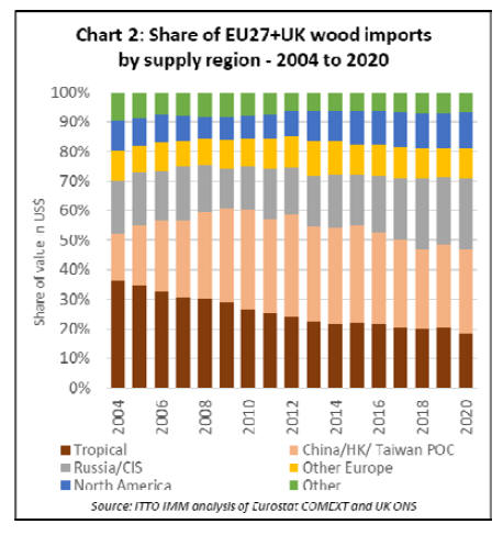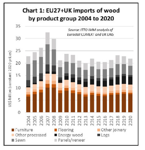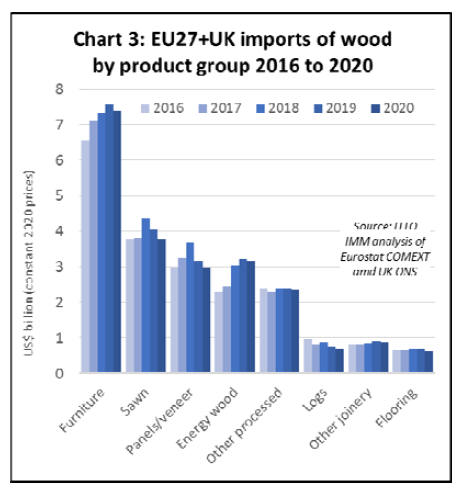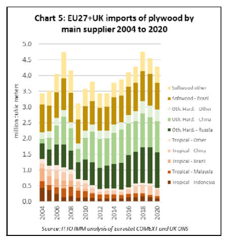 In quantity terms, in 2020 EU27+UK imports of plywood