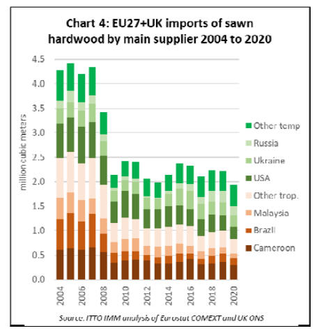 sawnwood declined 17% from Cameroon to 303,000 cu.m,