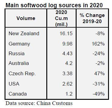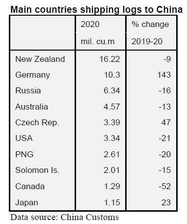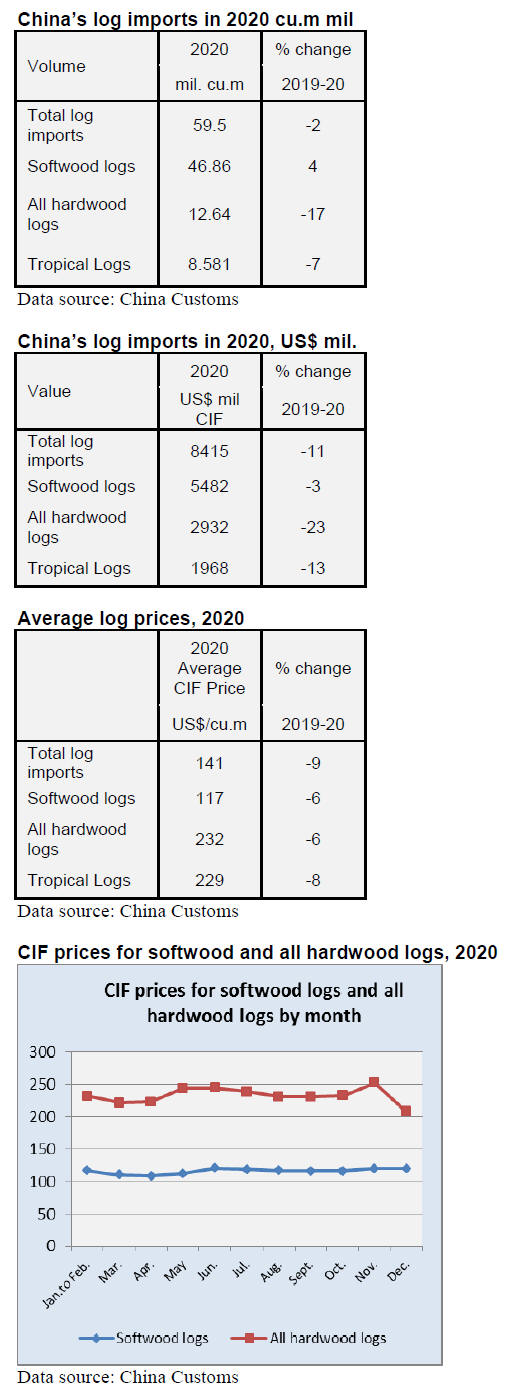 According to China Customs, log imports in 2020 totalled