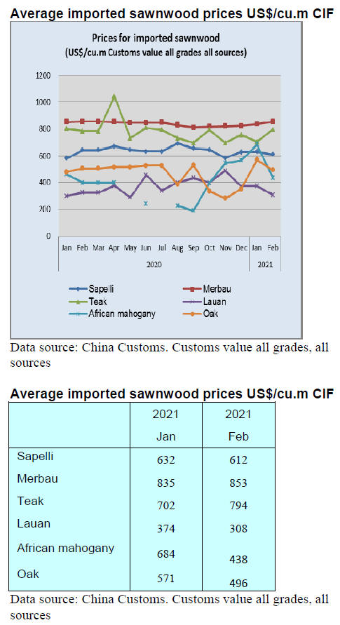 and 80% in value. The average price for imported logs