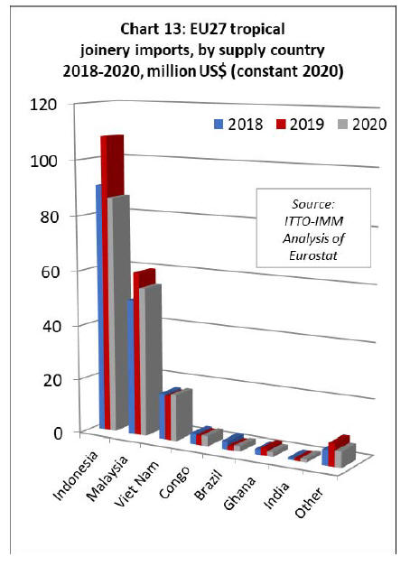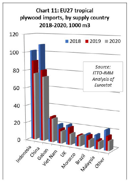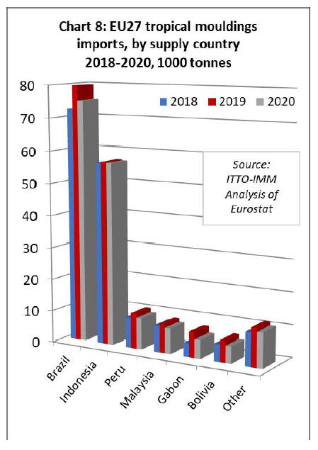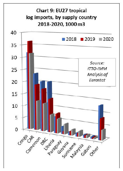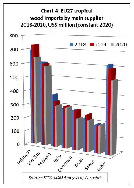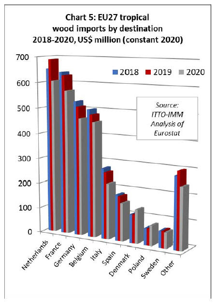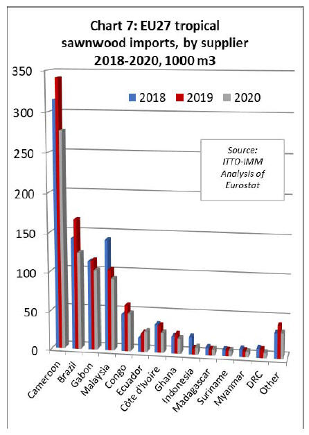 EU27 tropical sawnwood imports at record low in 2020