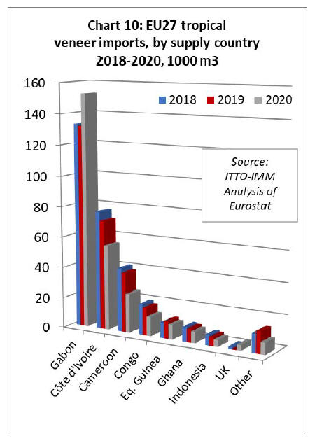 Veneer imports declined from all other major tropical