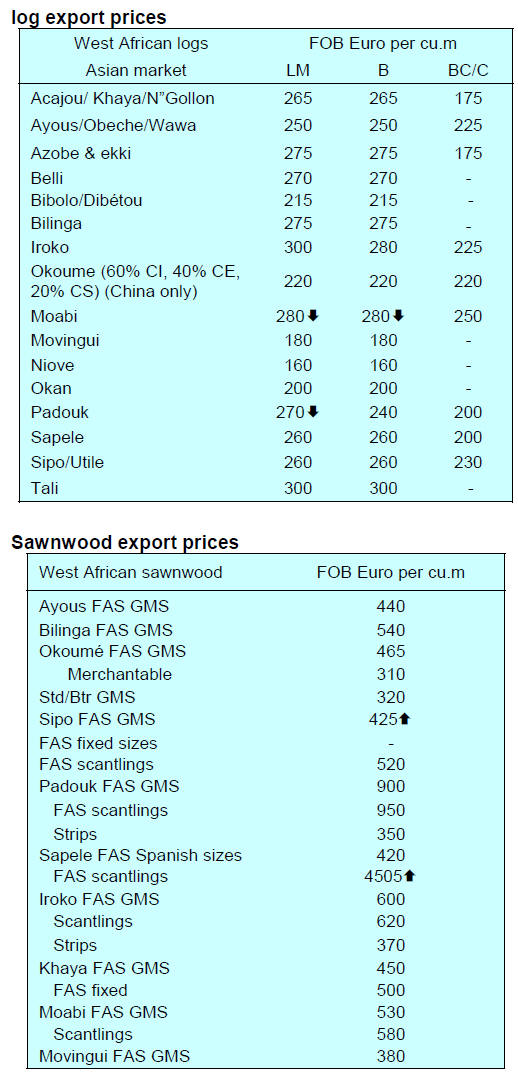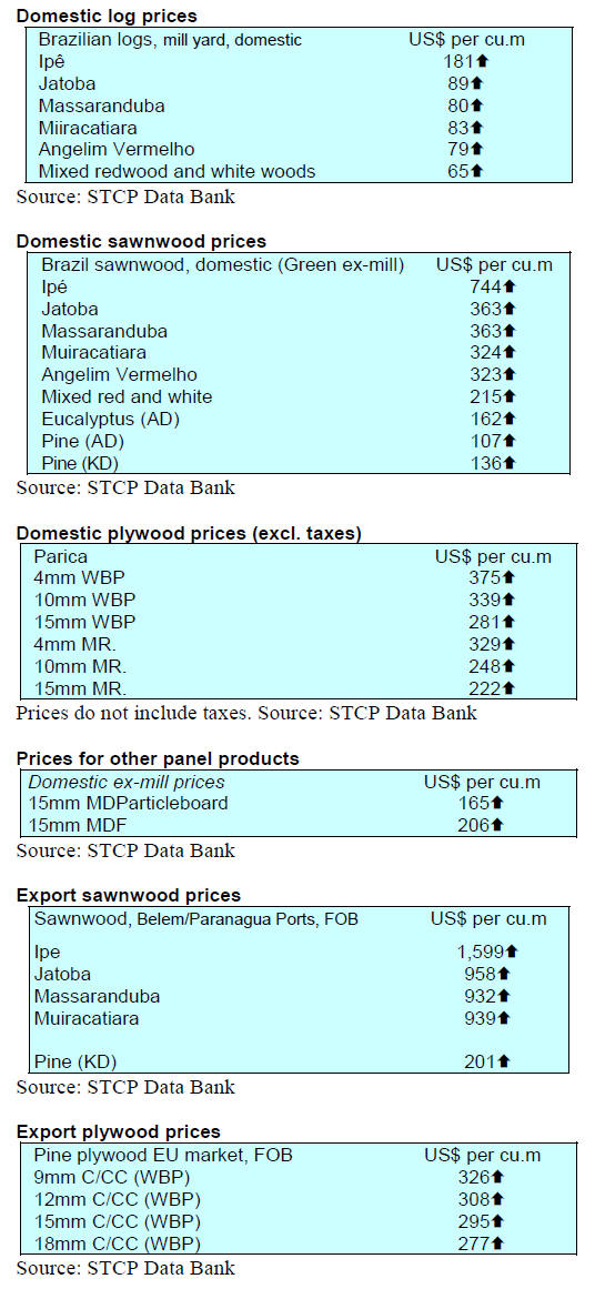 Tropical sawnwood exports increased 11.5% in volume,