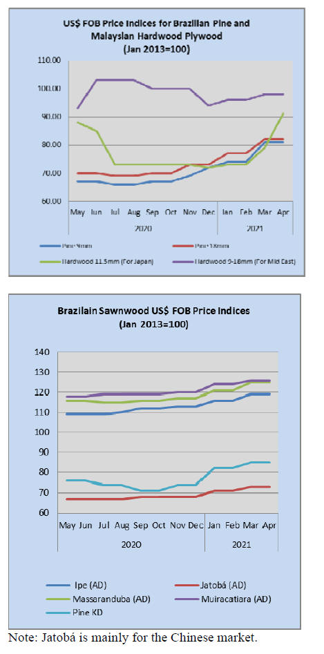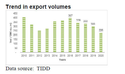 As for tropical plywood exports increased in volume