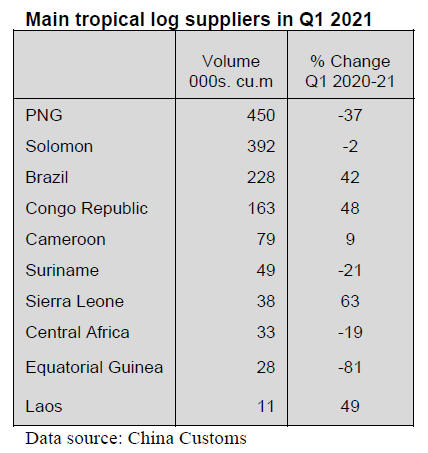 China imported tropical logs mainly from Papua New