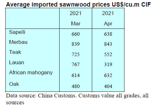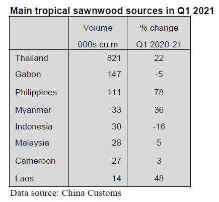 Decline in China¡¯s tropical sawnwood imports in Q1