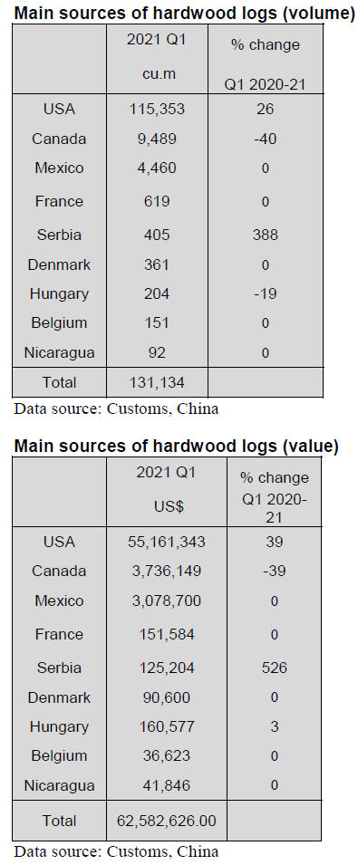 of hardwood logs to China and hardwood log imports from