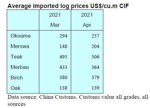 In contrast, the CIF price for China¡¯s tropical log imports
