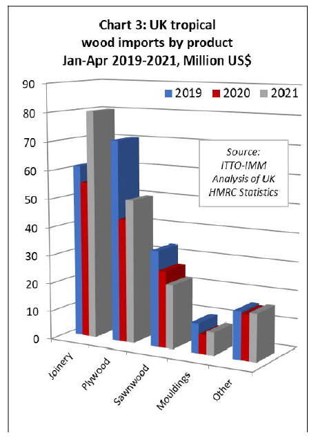 period in 2020, UK imports of tropical joinery products