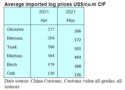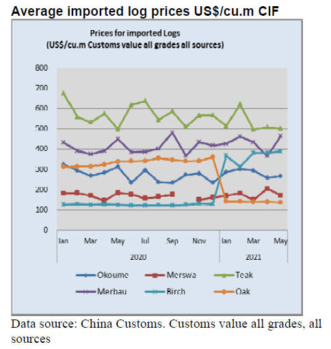 high price of US timber pushed prices for other species.