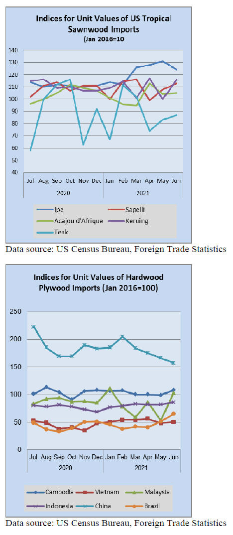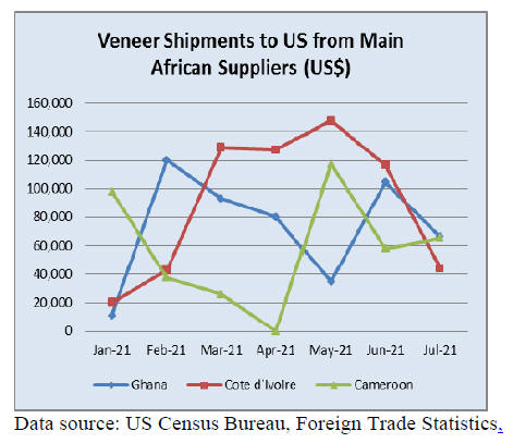Imports of tropical hardwood veneer fell 20% in July
