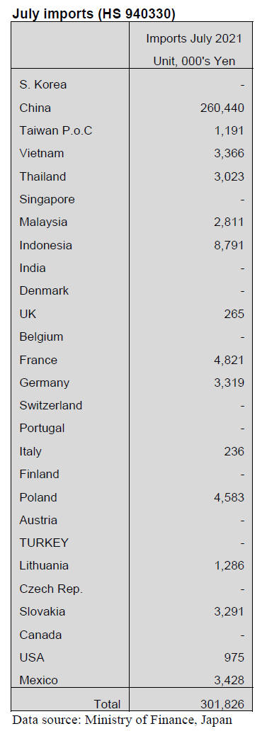 furniture (HS940330) rose over 20% in July, a result of the