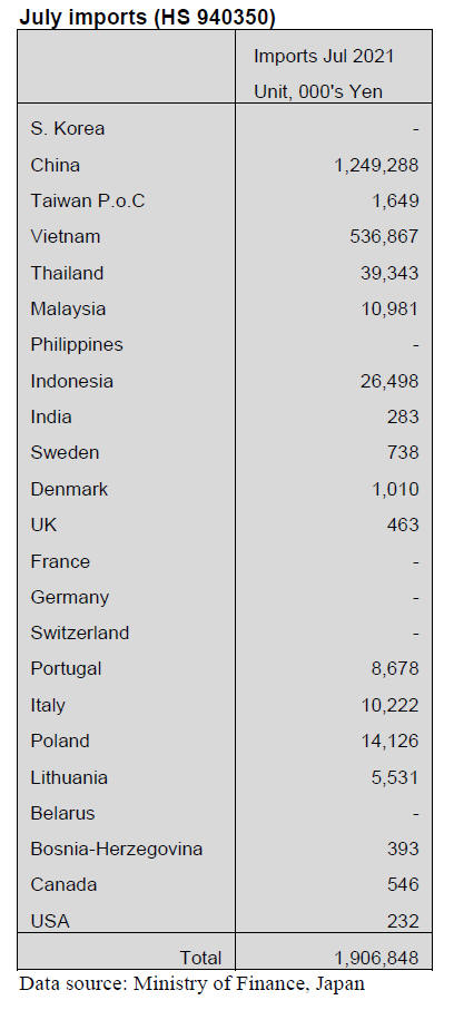 Bedroom furniture imports (HS 940350)