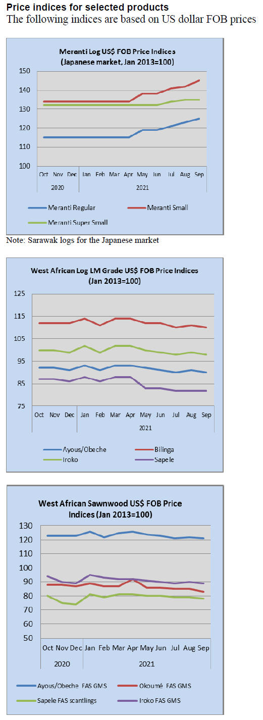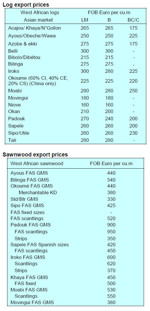 Tropical sawnwood exports fell 10% in volume from
