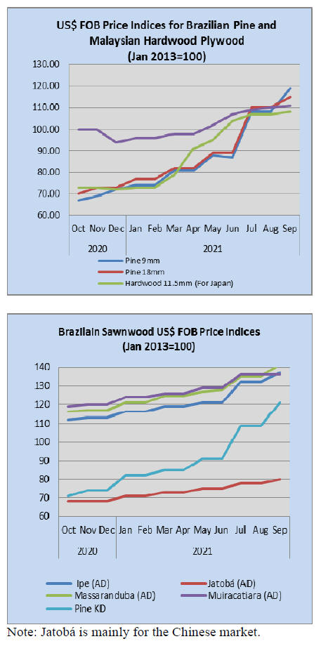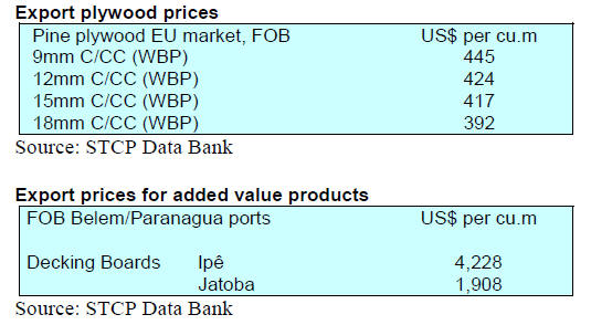 As for tropical plywood, exports increased in volume by
