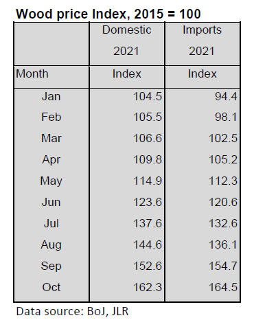 in the Western Japan. Since last June, cypress log prices