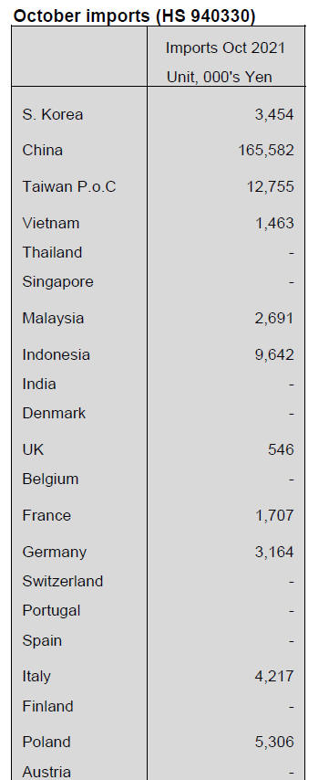 exporters of furniture products to Japan are Thailand,