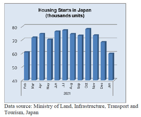 From a peak in October housing starts in Japan have been