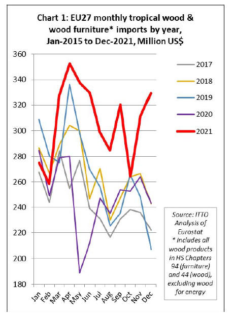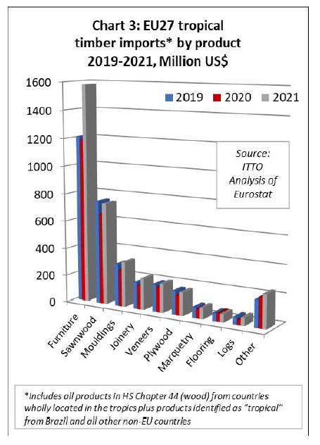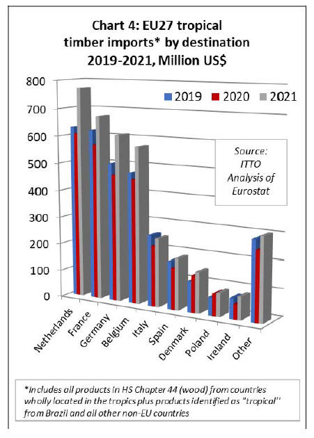 EU27 tropical wood imports up 23% in 2021