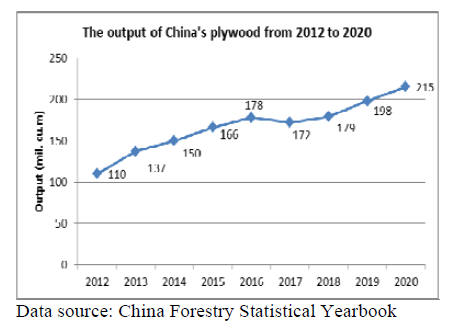 output capacity of plywood in China has been increasing