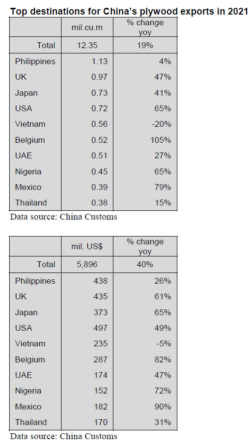 in 2021. China's plywood exports have been more than 10